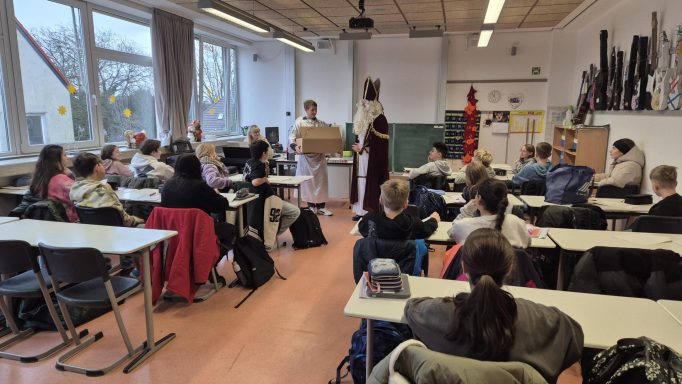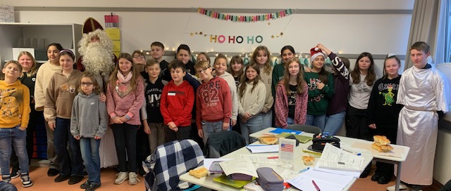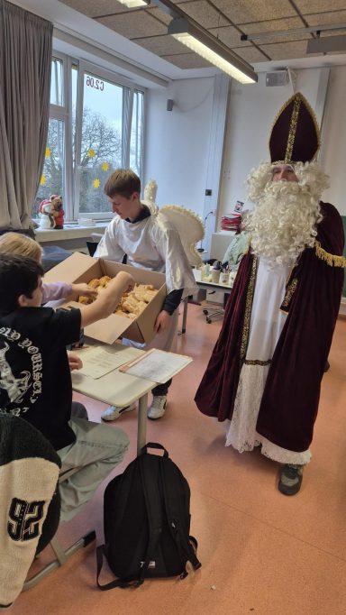 Der Nikolaus und seine Engelchen beschenken AER-Schüler-/und Lehrer:innen
