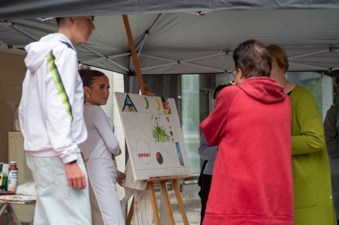 Die August-Everding-Realschule, die ein musisch-künstlerisches Schwerpunktprofil hat, war die erste Schule, die von dieser Gelegenheit Gebrauch machte. Unter dem Motto „We create“ präsentierten die Schülerinnen und Schüler seit Juni eine Vielzahl an Kunstwerken, die im Rahmen des Kunstunterrichts entstanden sind. Von Bildern über Objekte bis hin zu Fotografien zeigte die Ausstellung eine große Bandbreite kreativer Ausdrucksformen. Nachmittags sowie bei speziellen Kunstprojekten hatten die Künstler die Möglichkeit, interessierte Gäste zu empfangen und sich in anregenden Gesprächen mit den Bürgerinnen und Bürgern auszutauschen.