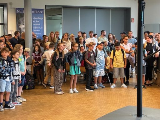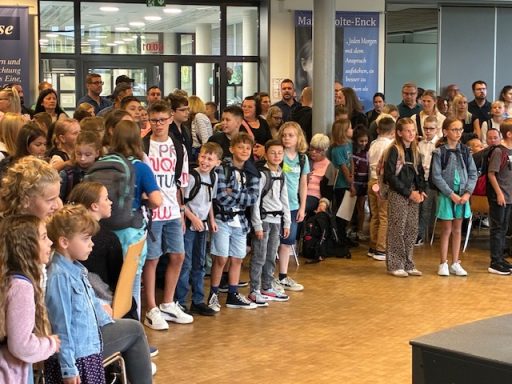 Wir freuen uns über das Wiedersehen mit den neu bei uns angemeldeten Kindern. Neben den neuen Mitschüler:innen gibt es dann auch das Kennenlernen mit den Klassenlehrer:innen-Teams und den Schulpaten.