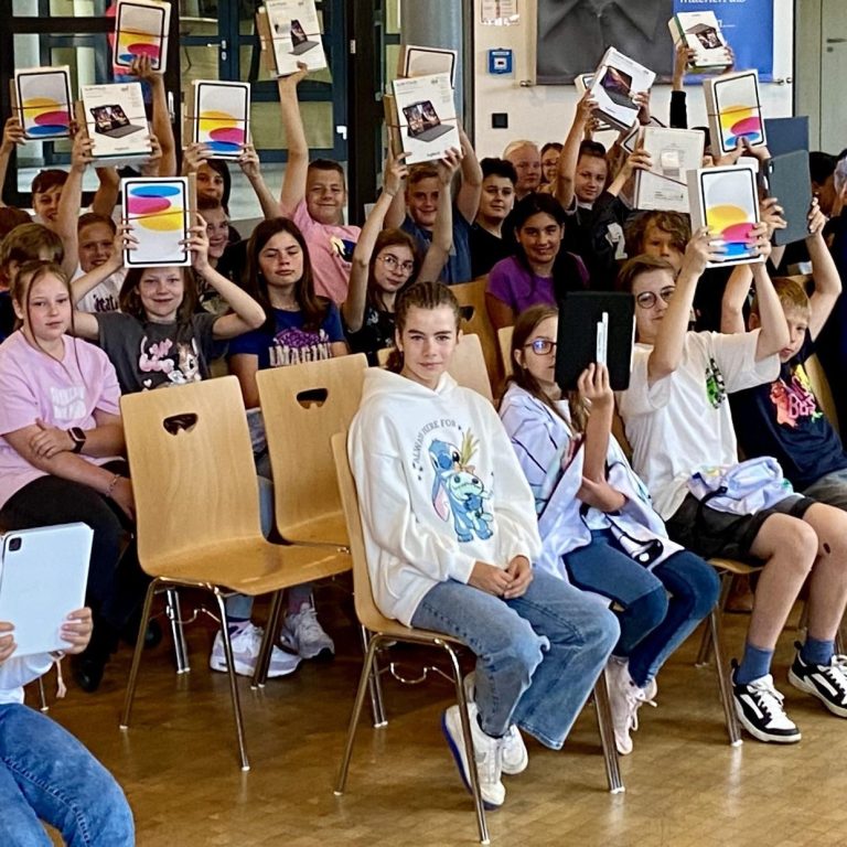 Mit dem gerade begonnen Schuljahr startet nun die Arbeit mit den Geräten. Die Schüler:innen kennen die Arbeit mit dem Tablet bereits aus der Grundschule, spezielle Funktionen wurden jedoch zunächst zusätzlich im Informatikunterricht in Klasse 5 kennen gelernt und eingeübt. In diesem Zusammenhang wurde im Rahmen der Medienerziehung auch auf mögliche Gefahren, Regeln und die verantwortungsvolle Nutzung im Umgang mit digitalen Endgeräten thematisiert.