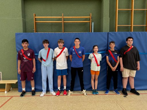 Der Schulsanitätsdienst der August-Everding-Realschule ist aus dem Schulalltag längst nicht mehr wegzudenken. Unsere engagierten Schulsanitäterinnen und Schulsanitäter sind stets zur Stelle, wenn Schülerinnen und Schüler medizinische Hilfe benötigen – ganz gleich, ob es sich um ein kleines Wehwehchen oder eine ernstere Verletzung handelt. Mit großer Einsatzbereitschaft und viel Einfühlungsvermögen kümmern sie sich zuverlässig um ihre Mitschülerinnen und Mitschüler. Auch über den regulären Schulbetrieb hinaus übernehmen sie Verantwortung: Im Pausendienst sowie bei schulischen Veranstaltungen, wie zuletzt beim Sportfest, unterstützen sie tatkräftig das Schulsekretariat und die Lehrkräfte.
