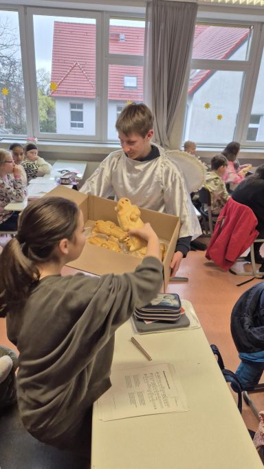Statt Nikoläusen hatte sich das Team um die SV-Lehrer:innen, Frau Schynol und Frau Konar, dieses Mal - mit Einverständnis des Nikolauses natürlich - ausgedacht, an alle leckere Stutenkerle zu verteilen. Ein wahrlich himmlischer Genuss! Danke an alle in Schule und Förderverein, die diese Aktion möglich gemacht haben!