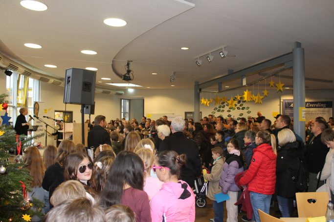 Über 120 Mitwirkende auf der Bühne – Schülerinnen und Schüler aus verschiedenen Klassen und Musikkursen sowie Schüler:innen, Lehrer:innen, Lehrer und Eltern in einem Chor mit kleiner Band im Hintergrund – gestalteten unter Leitung von Frau Slawitsch und Frau Weibels gemeinsam ein stimmungsvolles und vielfältiges Programm. Dieses Konzert hat eindrucksvoll gezeigt, wie viel Kreativität, Talent und Gemeinschaftsgeist in unserer Schulgemeinschaft steckt. Eine bis auf den letzten Platz gefüllte Aula hat wieder eindrucksvoll gezeigt, dass diese Veranstaltung zu den Beliebtesten im Schuljahr gehört.